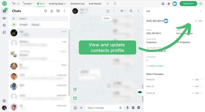 Step 4: After linking or creating, contacts info can be viewed or updated in one place without switching back and forth;