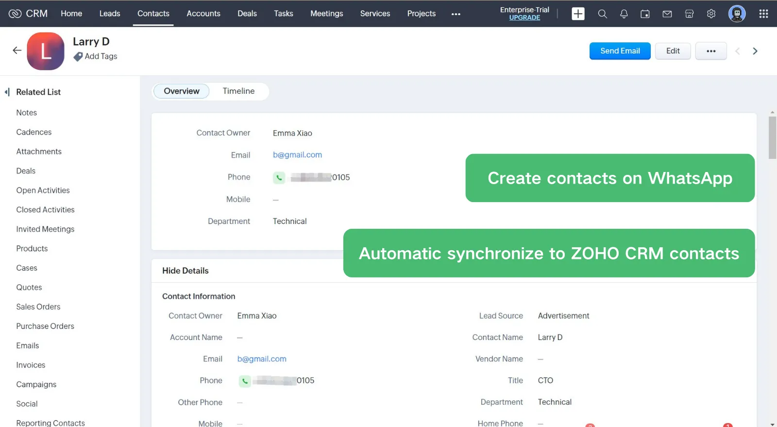 Step 4: After linking or creating, contacts info can viewedor updated in one place without switching back and forth;
